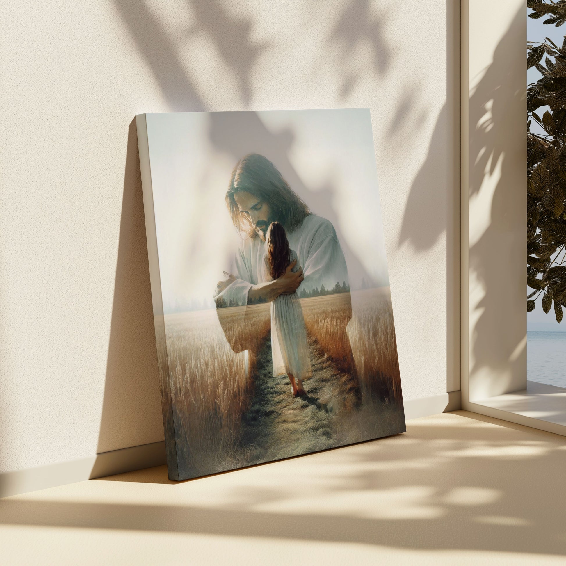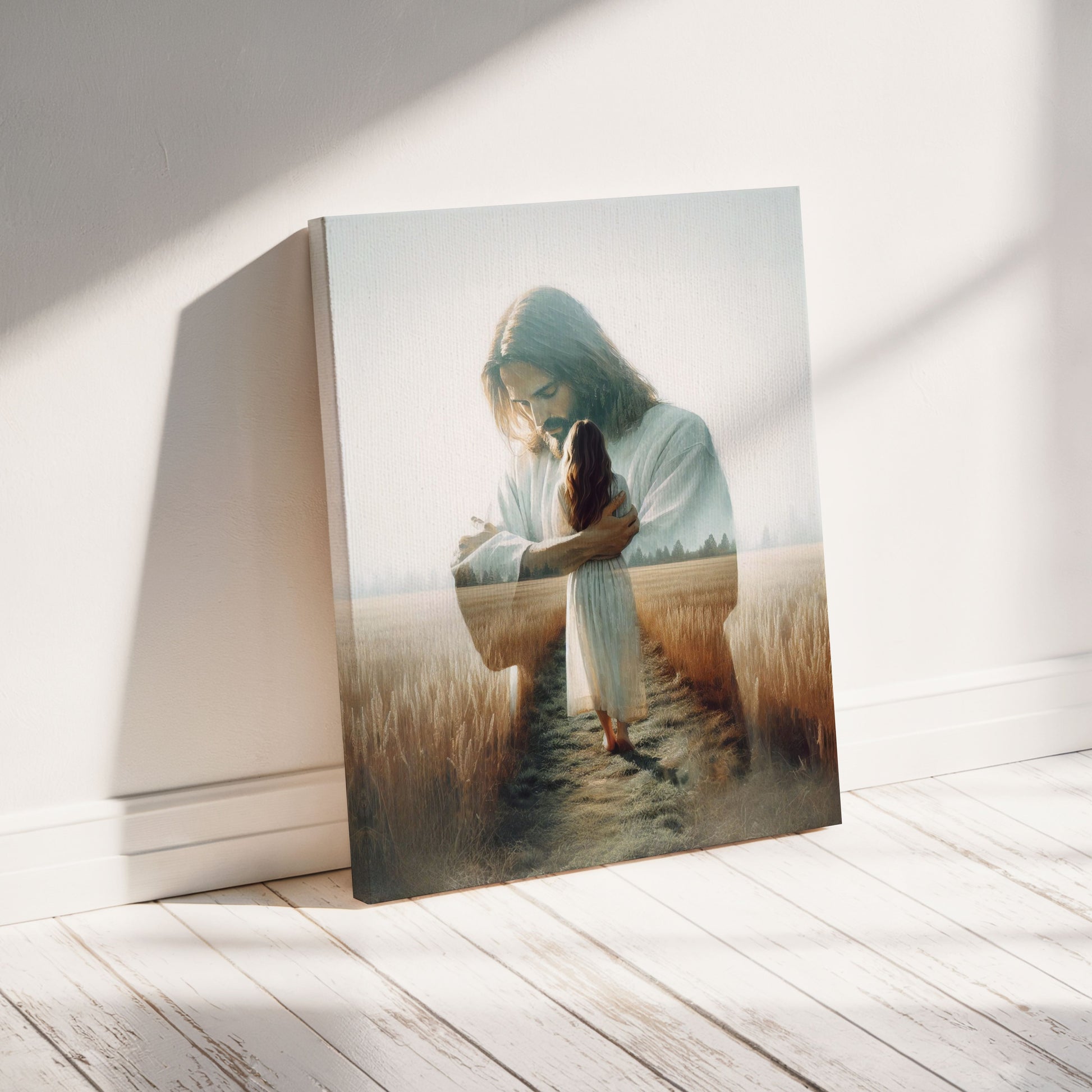 So beautiful. I am having some health problems and it’s hard to deal with. I love walking into my living room and having the visual reminder that the Lord is holding me close. He will never leave me or forsake me. The picture quality is outstanding. It looks like an expensive painting with out the price tag. I bought a picture frame from the thrift store and had it framed at my local art shop. Thank you so much for this beautiful picture.